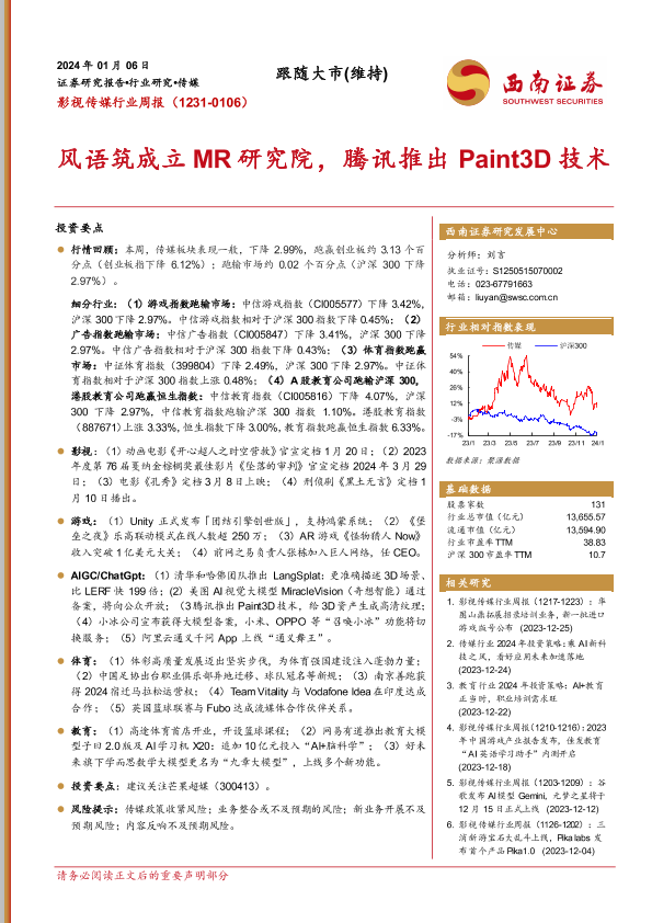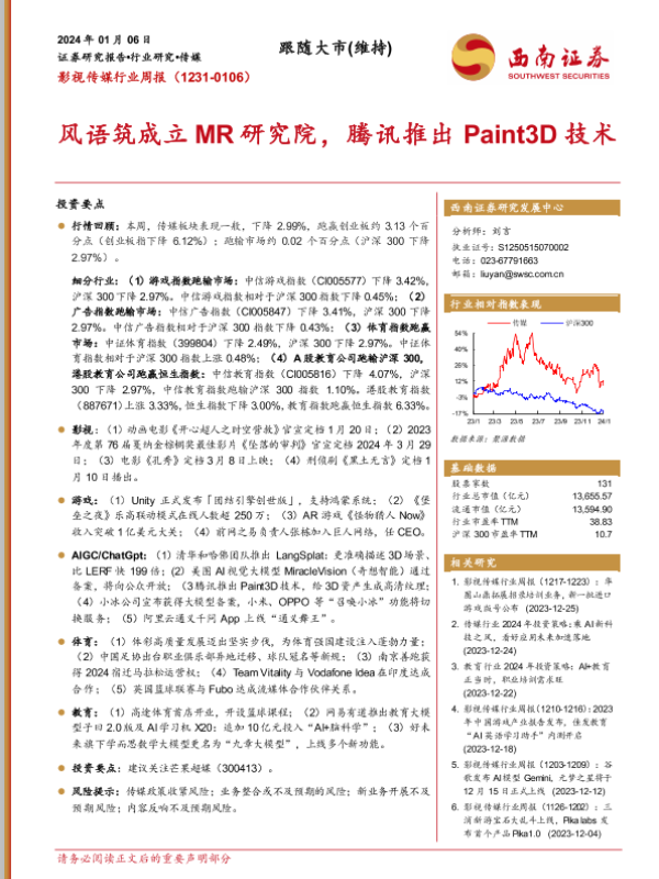 【西南证券】【20240106】影视传媒行业周报:风语筑成立MR研究院,腾讯推出Paint3D技术-21页