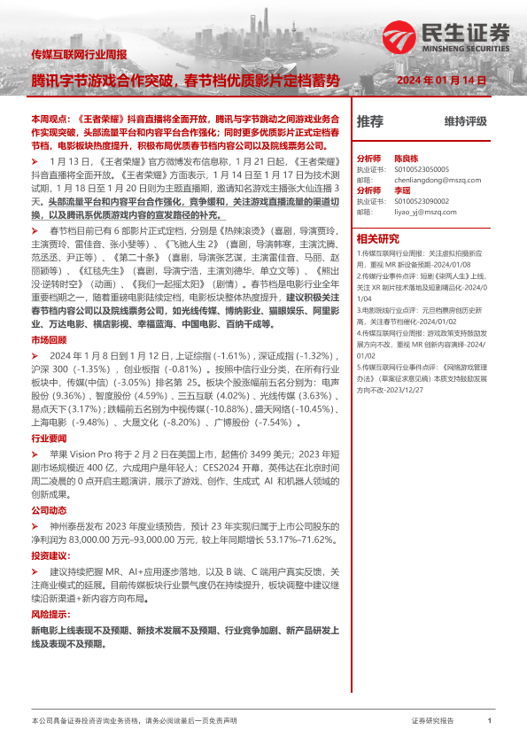 【民生证券】【20240114】腾讯字节游戏合作突破,春节档优质影片定档蓄势-17页