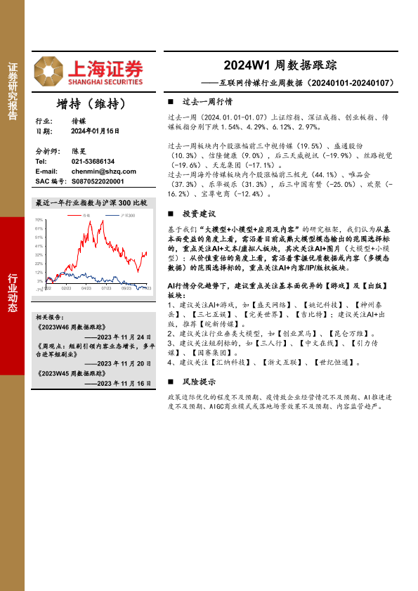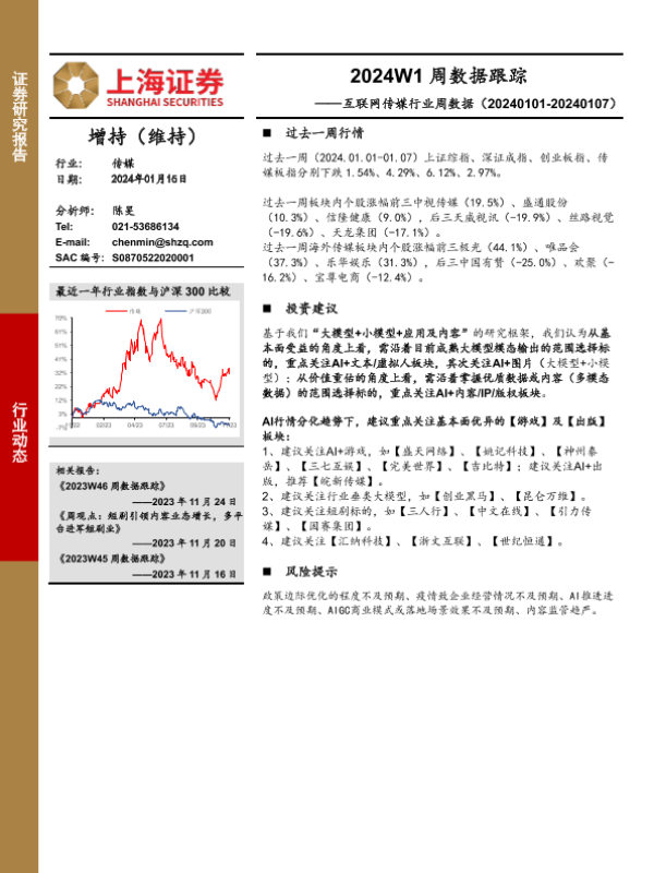 【上海证券】【20240115】互联网传媒行业周数据:2024W1周数据跟踪-20页