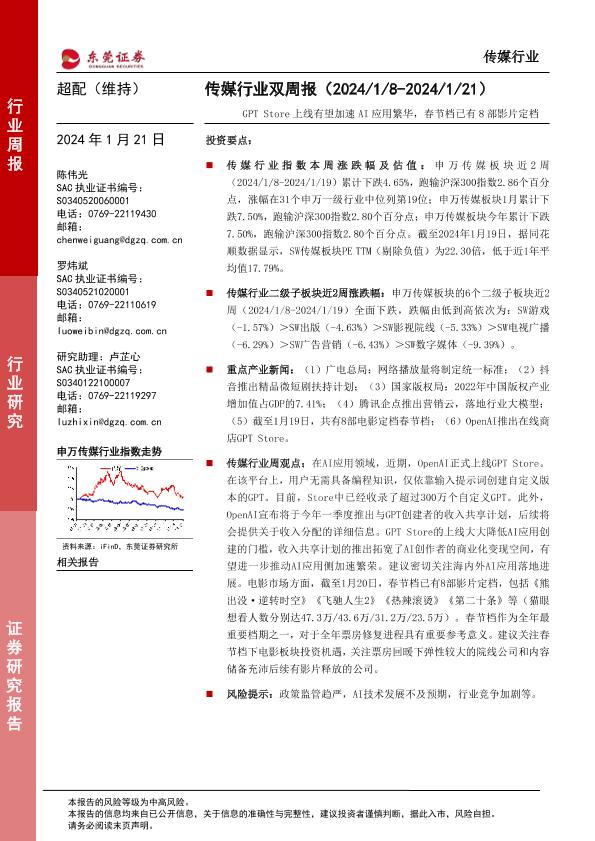 【东莞证券】【20240121】传媒行业双周报:GPT Store上线有望加速AI应用繁华,春节档已有8部影片定档-12页