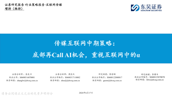 【东吴证券】【20240617】传媒互联网中期策略:底部再Call AI机会,重视互联网中的α-24页