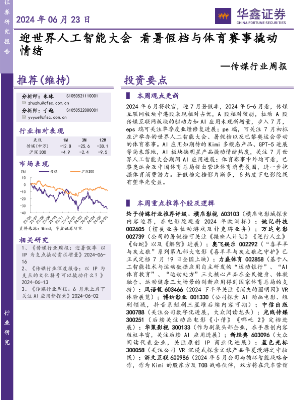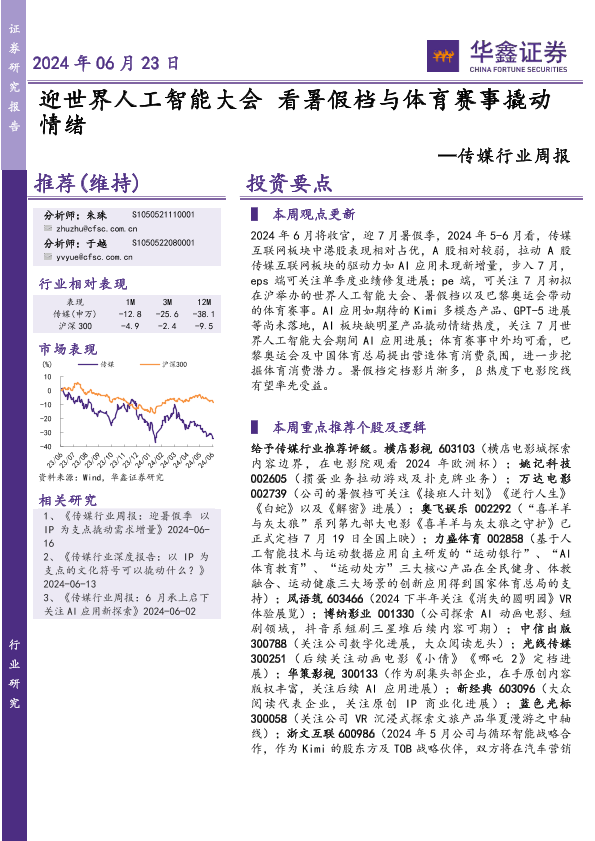 【华鑫证券】【20240623】迎世界人工智能大会看暑假档与体育赛事撬动情绪-20页