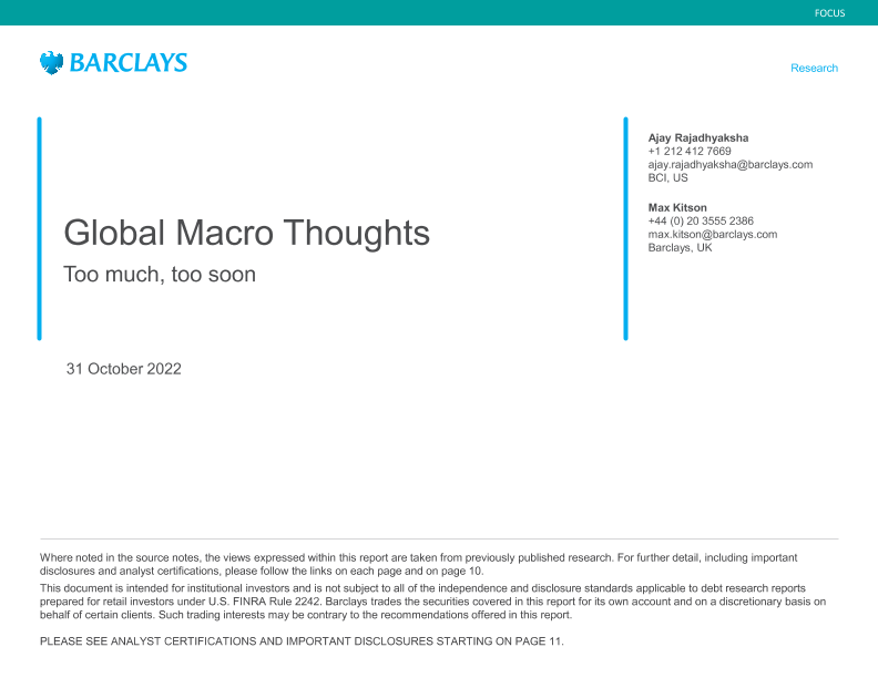 【Barclays】【20221031】Global Macro Thoughts-Too much, too soon-13页