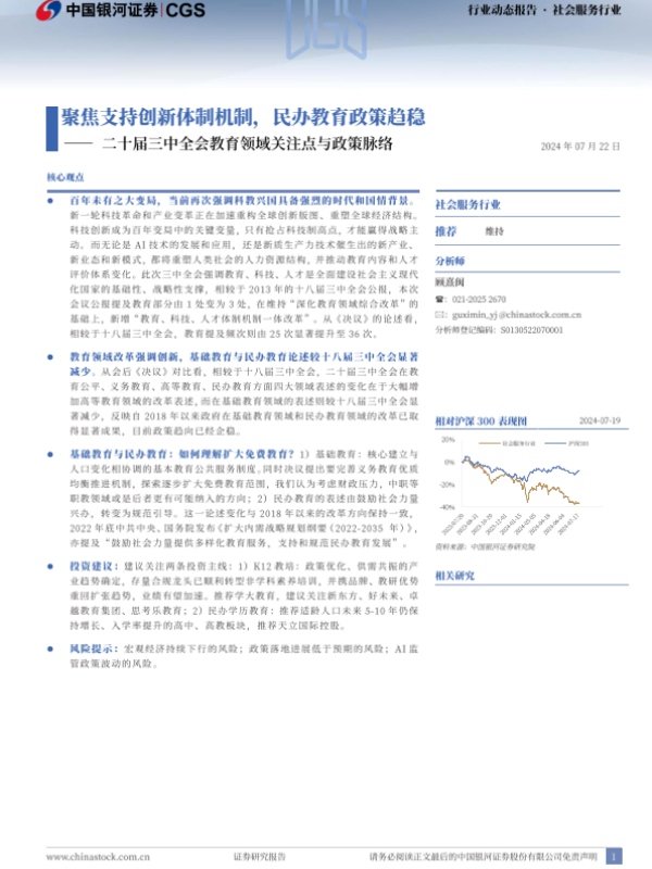 【银河证券】【20240722】二十届三中全会教育领域关注点与政策脉络:聚焦支持创新体制机制,民办教育政策趋稳-11页