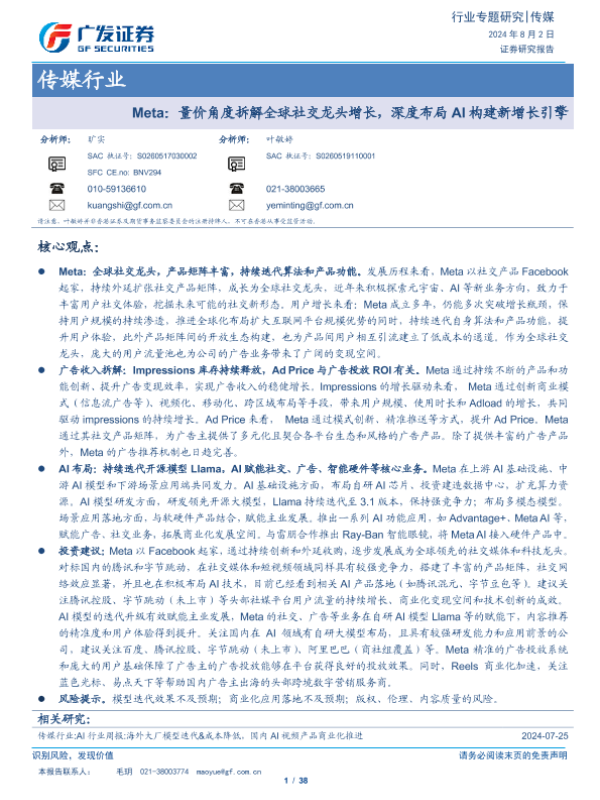 【广发证券】【20240802】Meta:量价角度拆解全球社交龙头增长,深度布局AI构建新增长引擎-38页