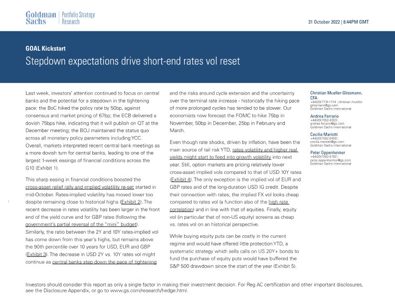 【Goldman Sachs】【20221031】GOAL Kickstart Stepdown expectations drive short-end rates vol reset-30页
