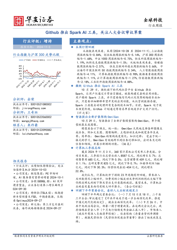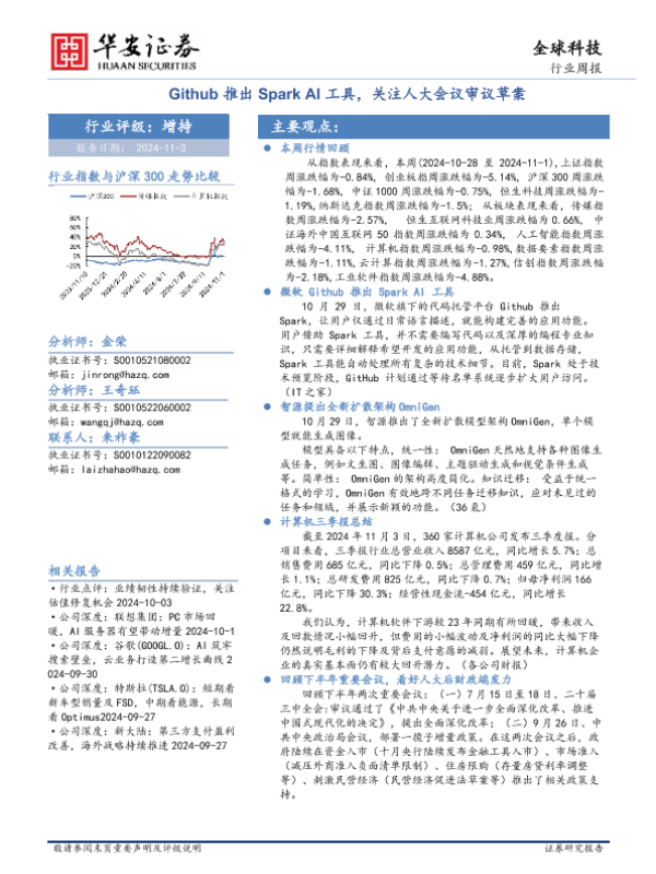【华安证券】【20241103】全球科技行业周报:Github推出Spark AI工具,关注人大会议审议草案-25页