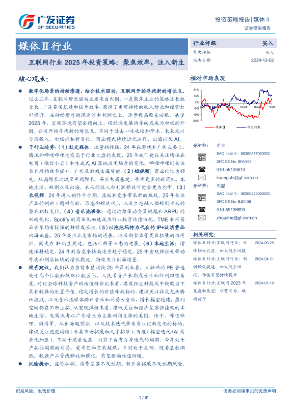 【广发证券】【20241202】互联网行业2025年投资策略:聚焦效率,注入新生-31页