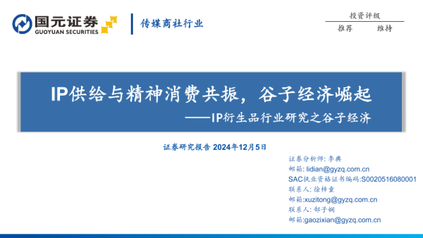 【国元证券】【20241205】IP衍生品行业研究之谷子经济:IP供给与精神消费共振,谷子经济崛起-32页