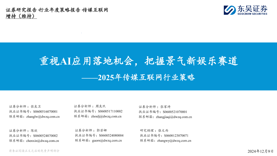 【东吴证券】【20241209】2025年传媒互联网行业策略:重视AI应用落地机会,把握景气新娱乐赛道-49页