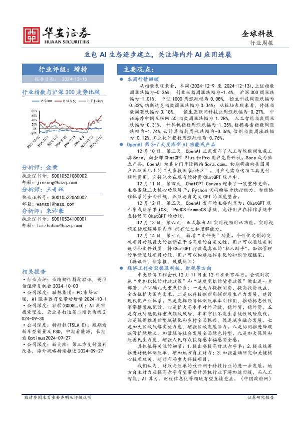 【华安证券】【20241215】全球科技行业周报:豆包AI生态逐步建立,关注海内外AI应用进展-27页