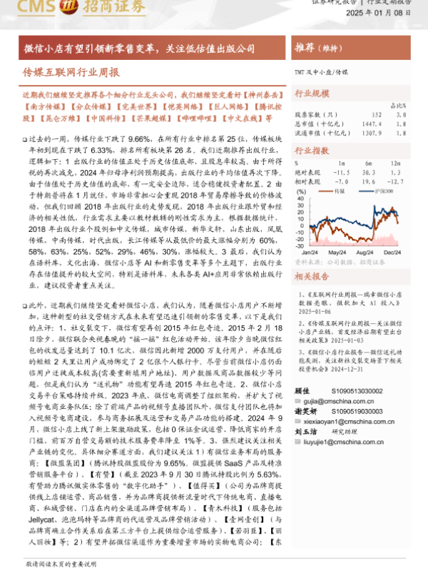 【海通证券】【20250108】微信小店有望引领新零售变革,关注低估值出版公司-12页