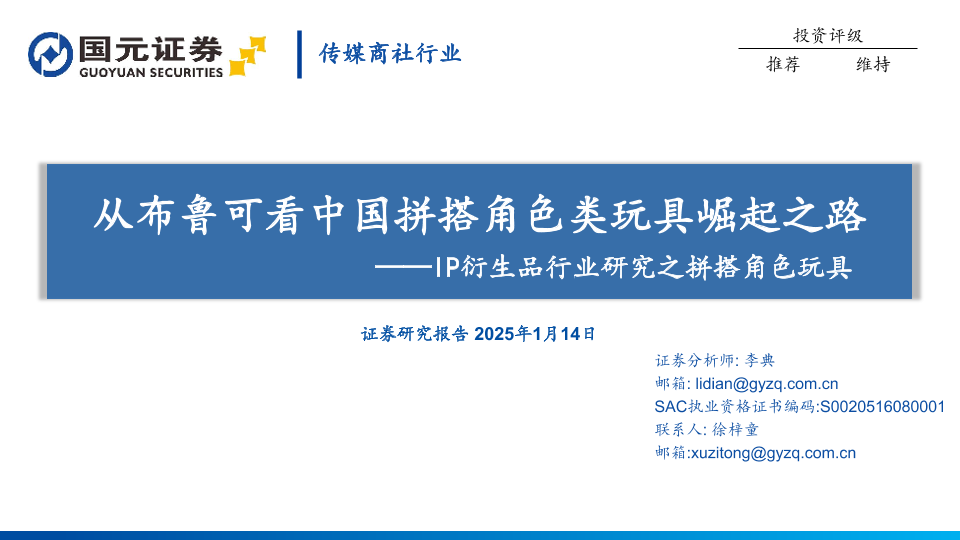 【国元证券】【20250114】IP衍生品行业研究之拼搭角色玩具:从布鲁可看中国拼搭角色类玩具崛起之路-21页