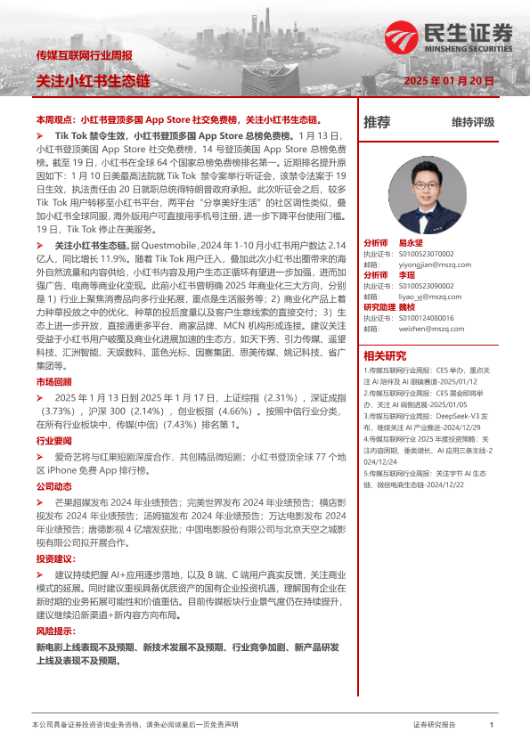 【民生证券】【20250120】传媒互联网行业周报:关注小红书生态链-17页