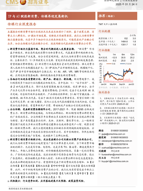 AI技术 IP授权 传媒行业 政策支持 新消费市场