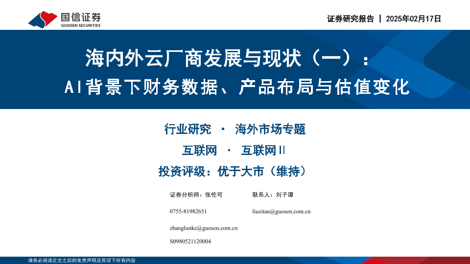 【国信证券】【20250217】海内外云厂商发展与现状:AI背景下财务数据、产品布局与估值变化-40页