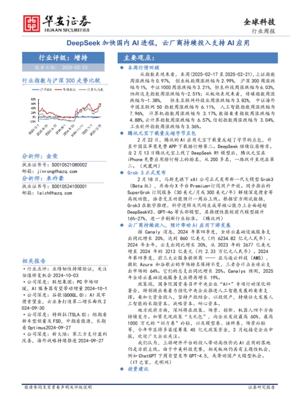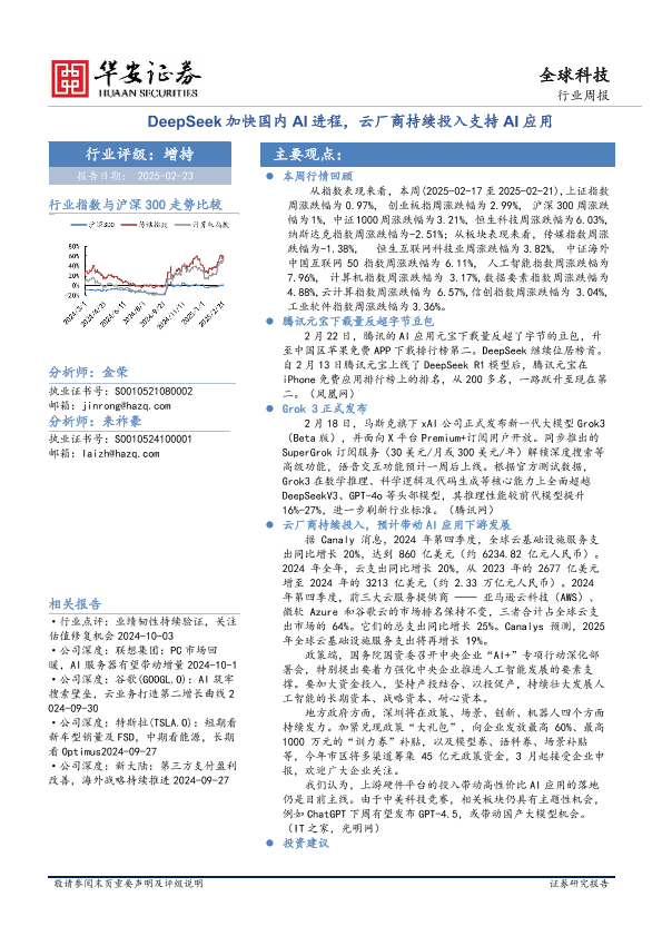 【华安证券】【20250223】全球科技行业周报:DeepSeek加快国内AI进程,云厂商持续投入支持AI应用-28页