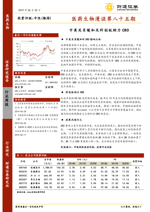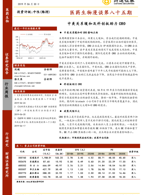 【财通证券】【20190630】医药生物漫谈第八十五期:中美关系缓和及科创板助力CRO-8页