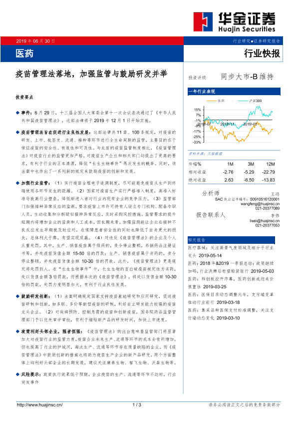 【华金证券】【20190630】疫苗管理法落地,加强监管与鼓励研发并举-3页
