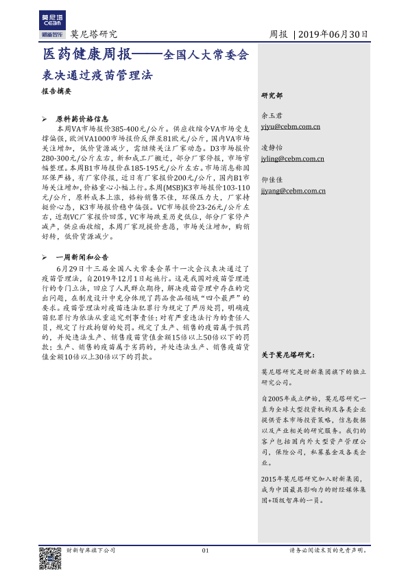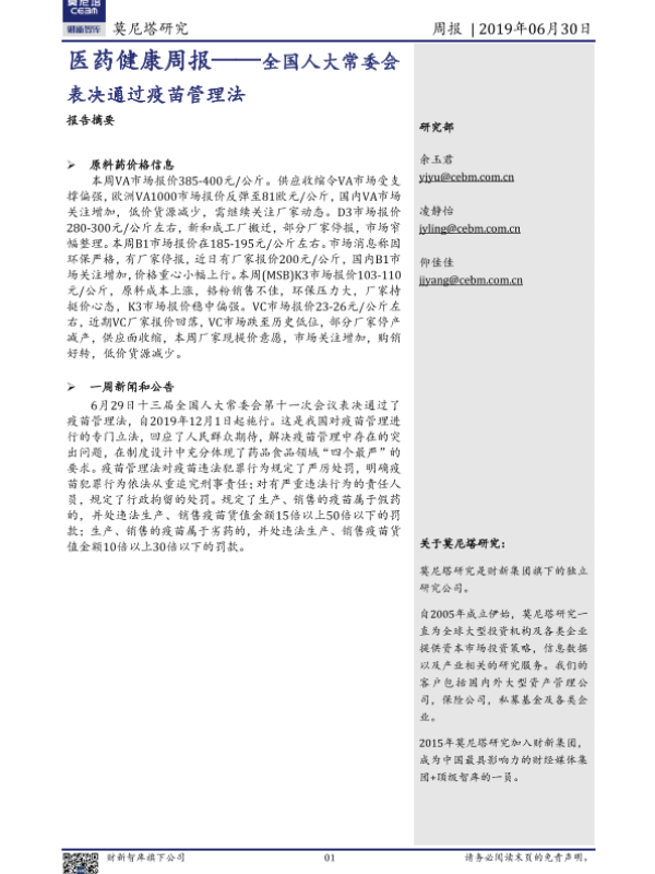【莫尼塔研究】【20190630】全国人大常委会表决通过疫苗管理法-16页