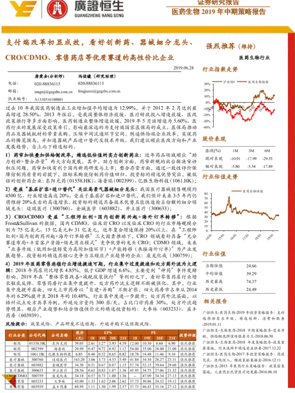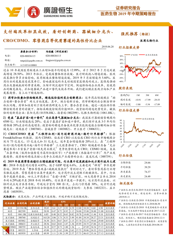 【广证恒生】【20190628】医药生物2019年中期策略报告:支付端改革初显成效,看好创新药-37页