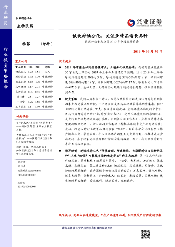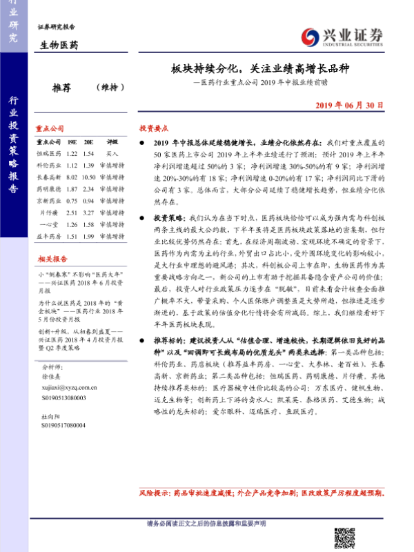 【兴业证券】【20190630】板块持续分化,关注业绩高增长品种-8页