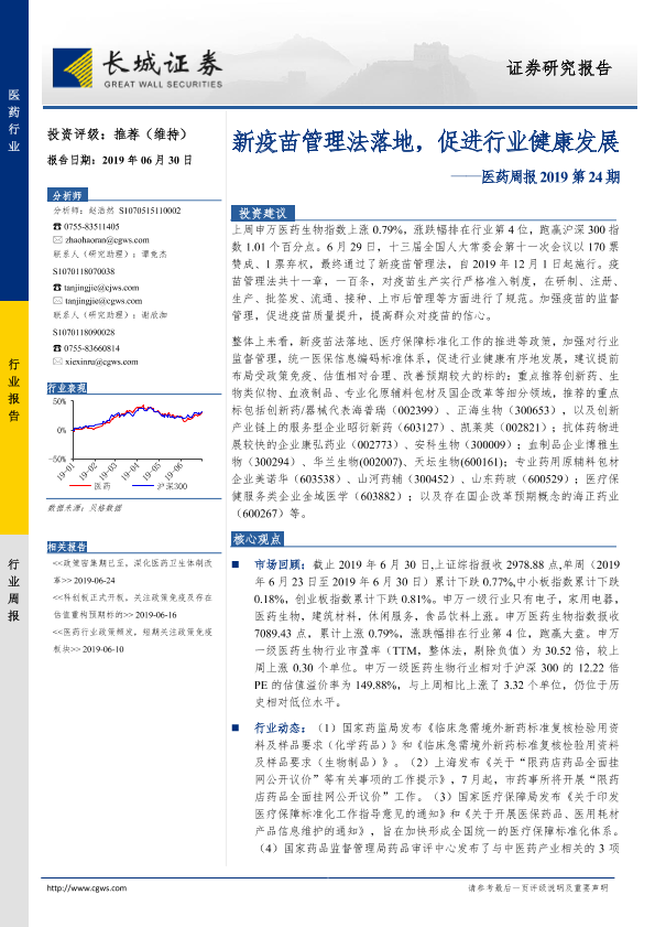 【长城证券】【20190630】新疫苗管理法落地,促进行业健康发展-16页