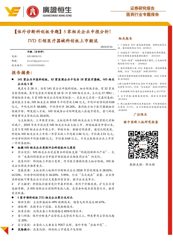 【广证恒生】【20190701】体外诊断科创板专题:5家相关企业申报分析!IVD引领医疗器械科创板上市潮流-21页