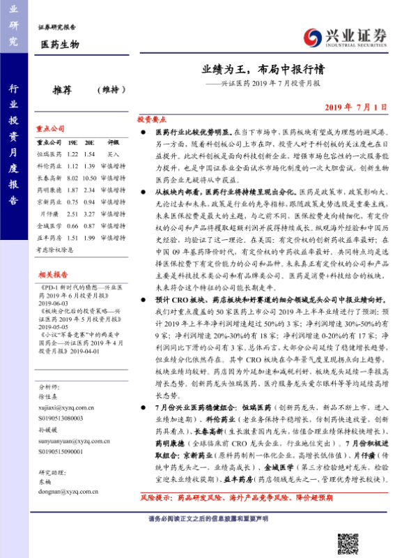 业绩预测 中报行情 医药行业 投资策略 科创板
