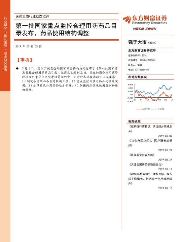 【东方财富证券】【20190703】医药生物行业动态点评:第一批国家重点监控合理用药药品目录发布,药品使用结构调整-4页