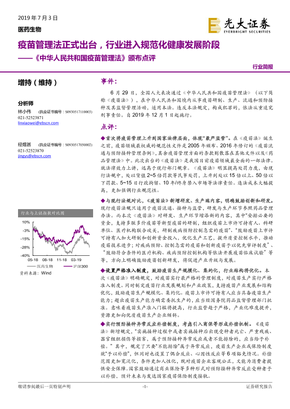 【光大证券】【20190703】医药生物行业简报:《中华人民共和国疫苗管理法》颁布点评-4页