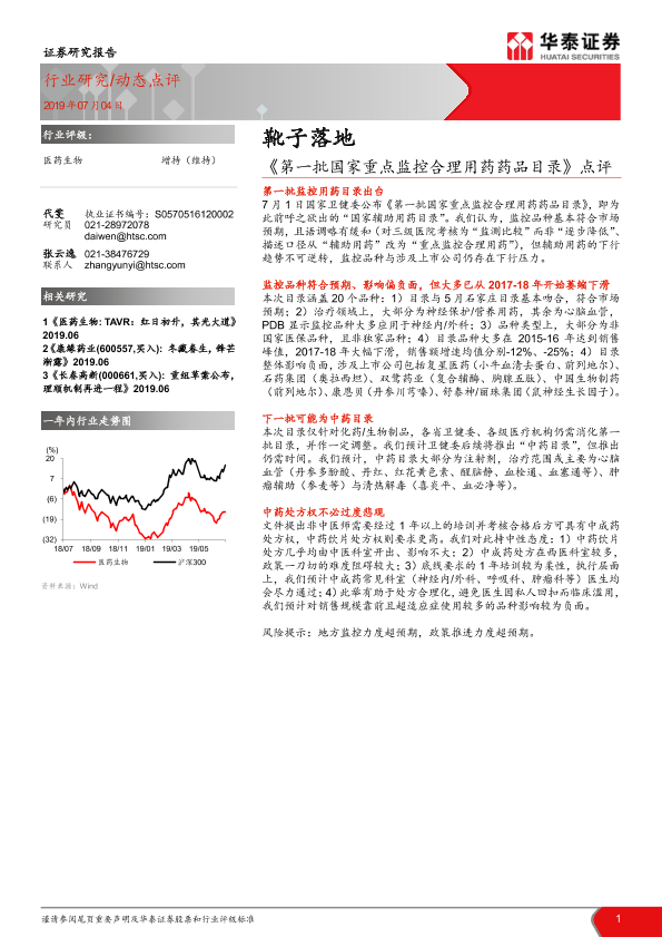 【华泰证券】【20190704】《第一批国家重点监控合理用药药品目录》点评-靴子落地-3页