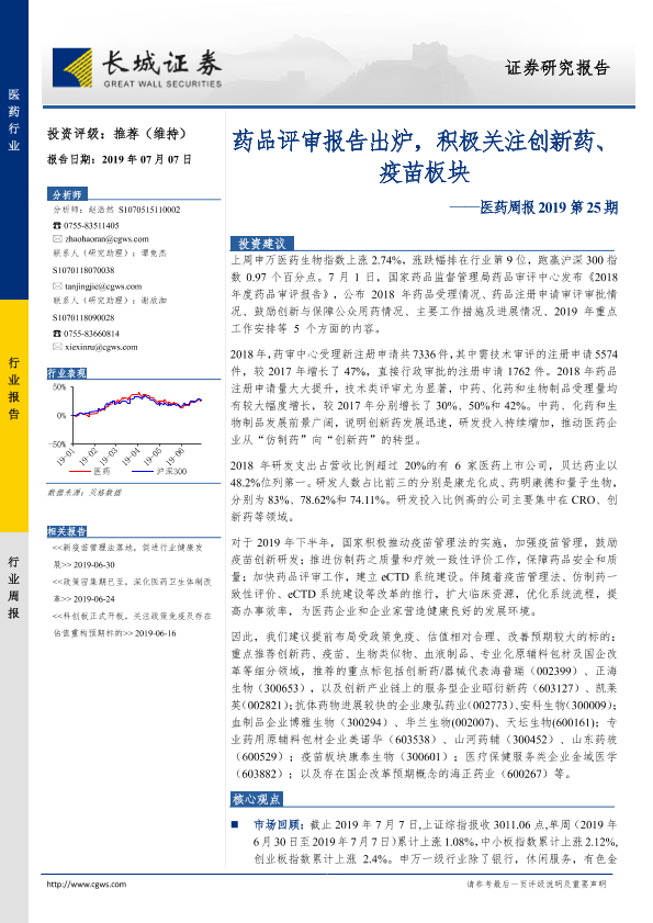 【长城证券】【20190707】药品评审报告出炉,积极关注创新药、疫苗板块-17页