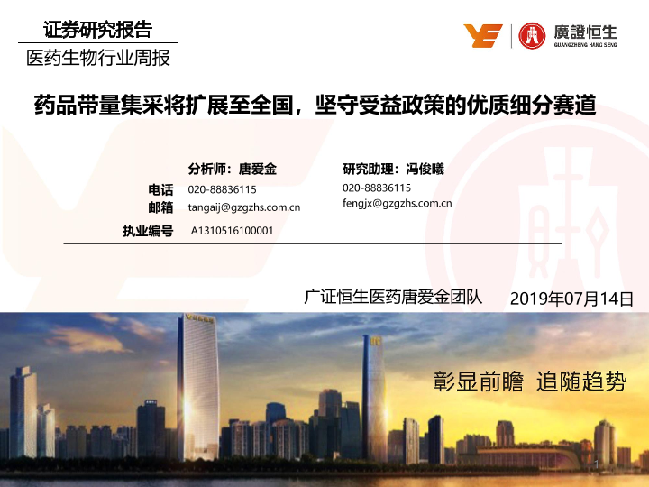 【广证恒生】【20190714】医药生物行业周报:药品带量集采将扩展至全国,坚守受益政策的优质细分赛道-27页