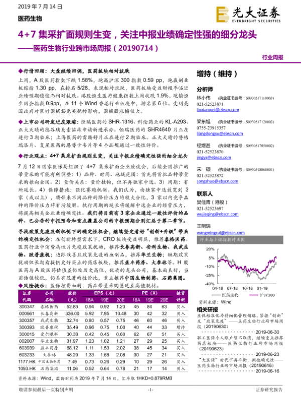 【光大证券】【20190714】4+7集采扩面规则生变,关注中报业绩确定性强的细分龙头-33页