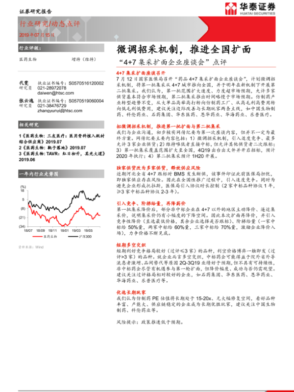 【华泰证券】【20190715】4+7集采扩面企业座谈会点评-微调招采机制,推进全国扩面-4页