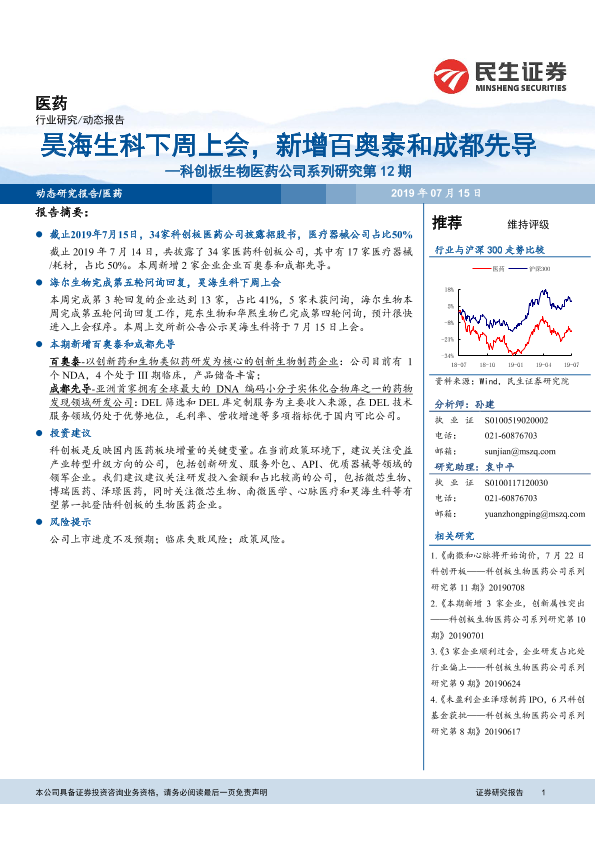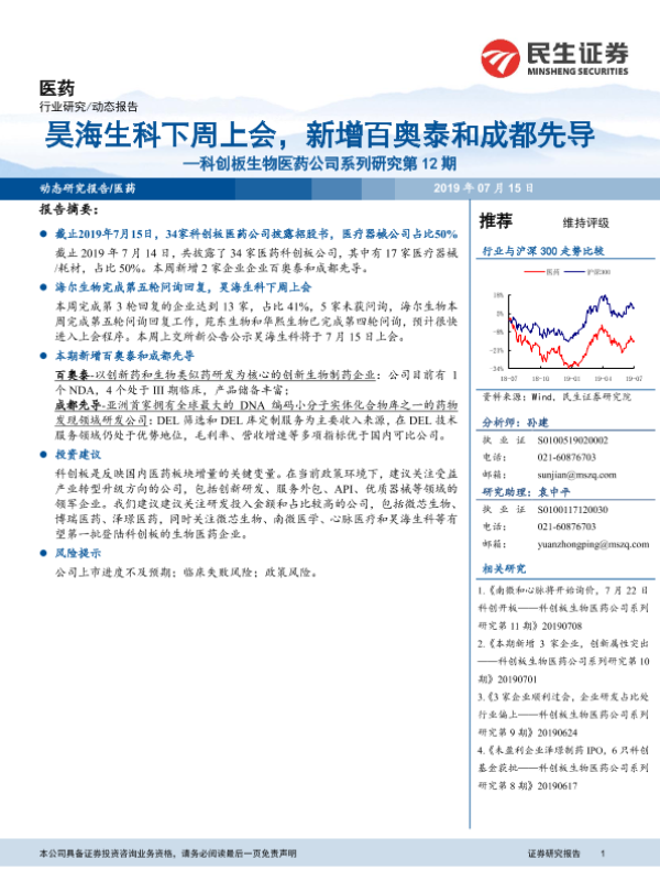 【民生证券】【20190715】昊海生科下周上会,新增百奥泰和成都先导-16页