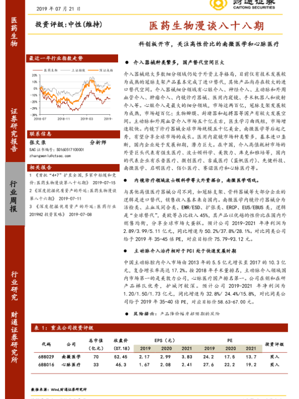 【财通证券】【20190721】医药生物漫谈八十八期:科创板开市,关注高性价比的南微医学和心脉医疗-43页