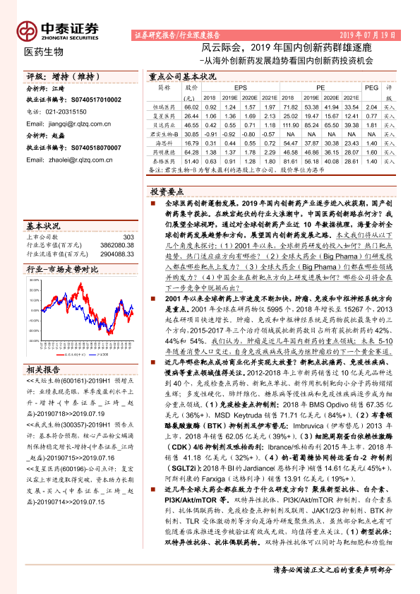 【中泰证券】【20190719】从海外创新药发展趋势看国内创新药投资机会-27页