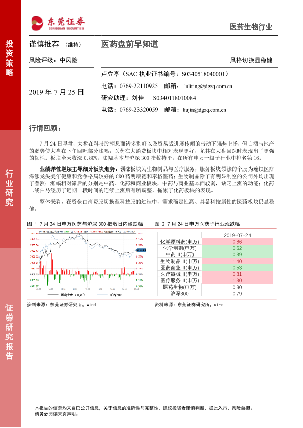 【东莞证券】【20190725】医药盘前早知道:风格切换显稳健-5页