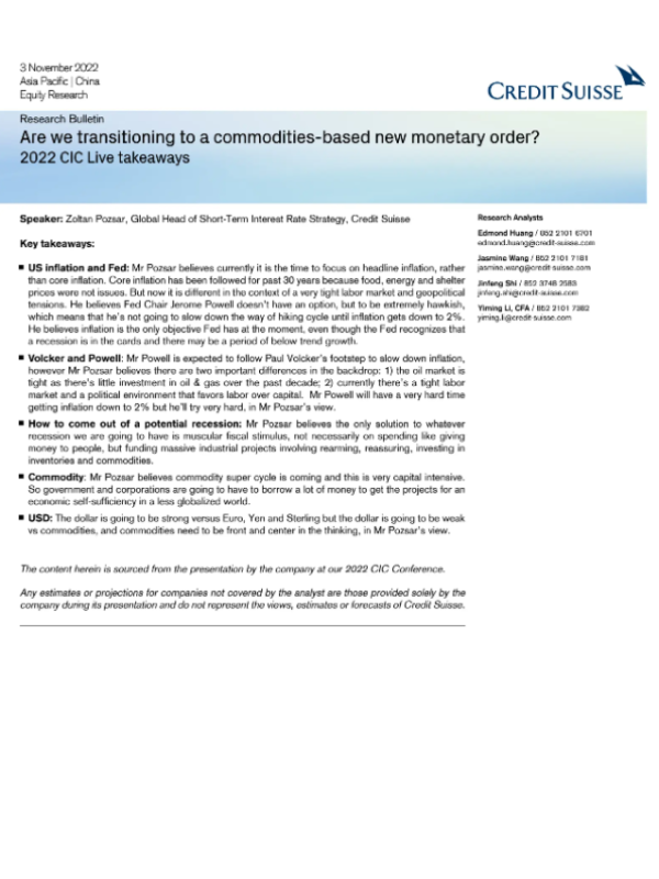 【Credit Suisse】【20220101】Are we transitioning to a commodities-based new monetary order?2022 CIC Live takeaways-1页