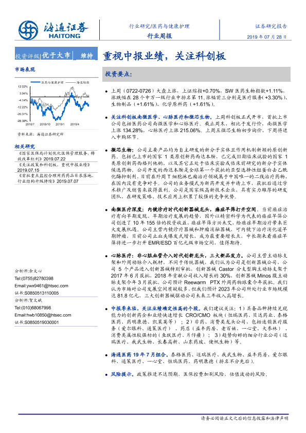 【海通证券】【20190728】医药与健康护理行业周报:重视中报业绩,关注科创板-10页