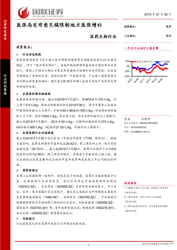 【国联证券】【20190729】医保局发布意见稿限制地方医保增补-18页