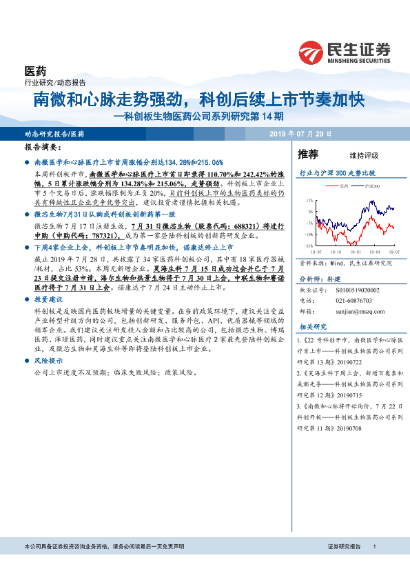【民生证券】【20190729】南微和心脉走势强劲,科创后续上市节奏加快-8页