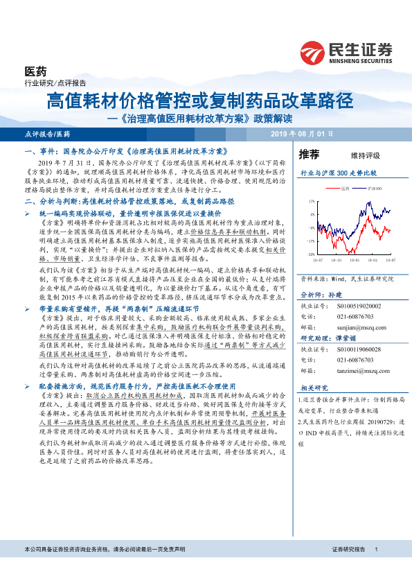 【民生证券】【20190801】治理高值医用耗材改革方案政策解读:高值耗材价格管控或复制药品改革路径-5页