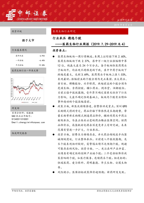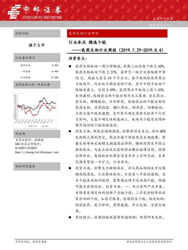 【中邮证券】【20190804】行业承压 精选个股——医药生物行业周报-13页