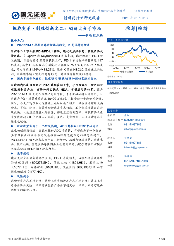 【国元证券】【20190805】创新药行业研究报告:创新靶点篇:拥抱变革·制胜创新之二:顾盼大分子市场-35页