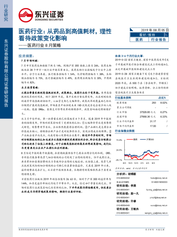 【东兴证券】【20190805】医药行业8月策略:从药品到高值耗材,理性看待政策变化影响-35页