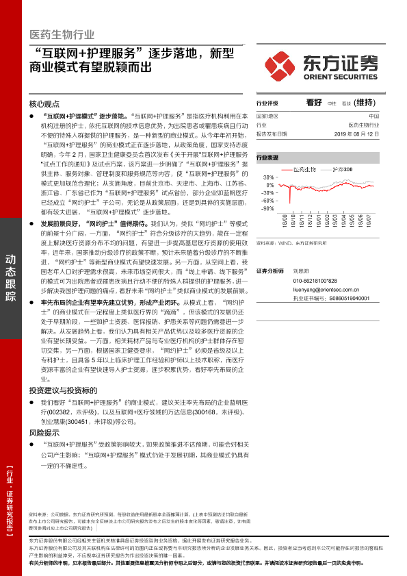 【东方证券】【20190812】医药生物行业:“互联网+护理服务”逐步落地,新型商业模式有望脱颖而出-11页