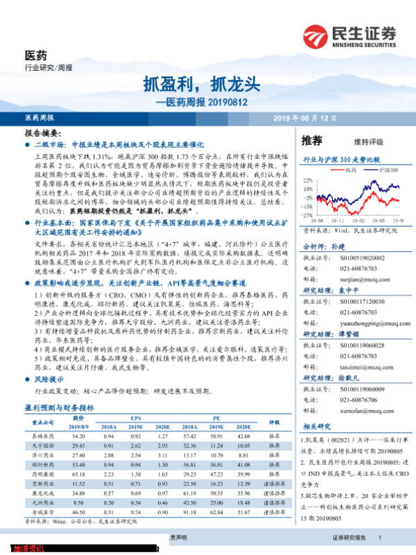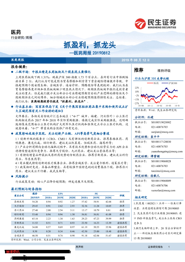 【民生证券】【20190812】医药周报:抓盈利,抓龙头-12页